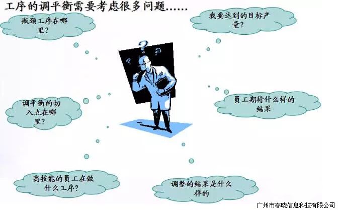 4、确定是否有瓶颈工序,分解作业时间较长的工序,把分拆出的工序安排到其他的工序中去。