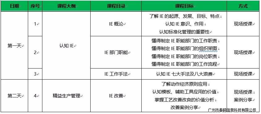 一、培训名称:春晓学院第四十期IE培训班—中级班