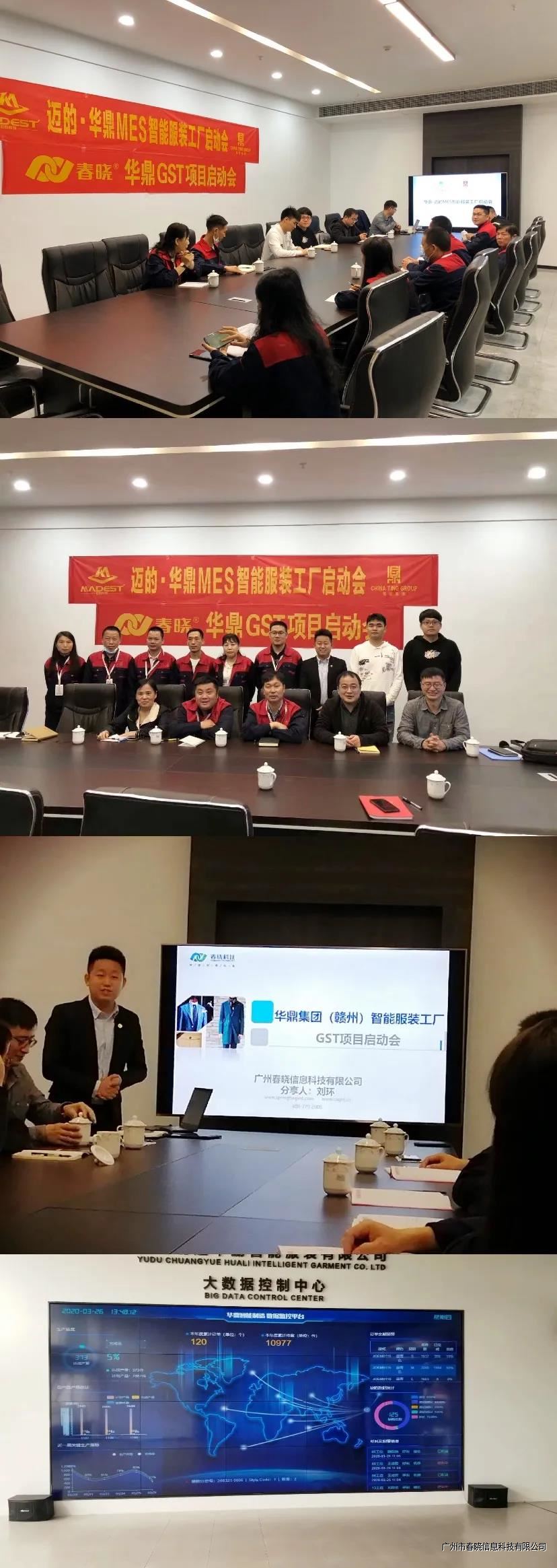 集团旗下子公司华鼎服饰(赣州)有限公司于2019年金秋十月入驻于都,坐落于上欧工业园区,厂房总面积14万平方米。目前一期工程包含9条智能吊挂生产系统,9条智能流水线生产系统,全流程后道生产系统。春晓GST+迈的MES于2020年3月26日正式启动!启动会当天就迎来了江西省副省长的检阅。春晓GST,力求最好的产品赋能客户,打造智慧协同数字化工厂!实现数据从订单接入系统,研发管理系统,裁剪管理系统到车缝管理系统。后道管理系统至物料管理系统,实现全流程数字化、透明化,并结合智能调度,优化排程,实现生产效率显著提升。