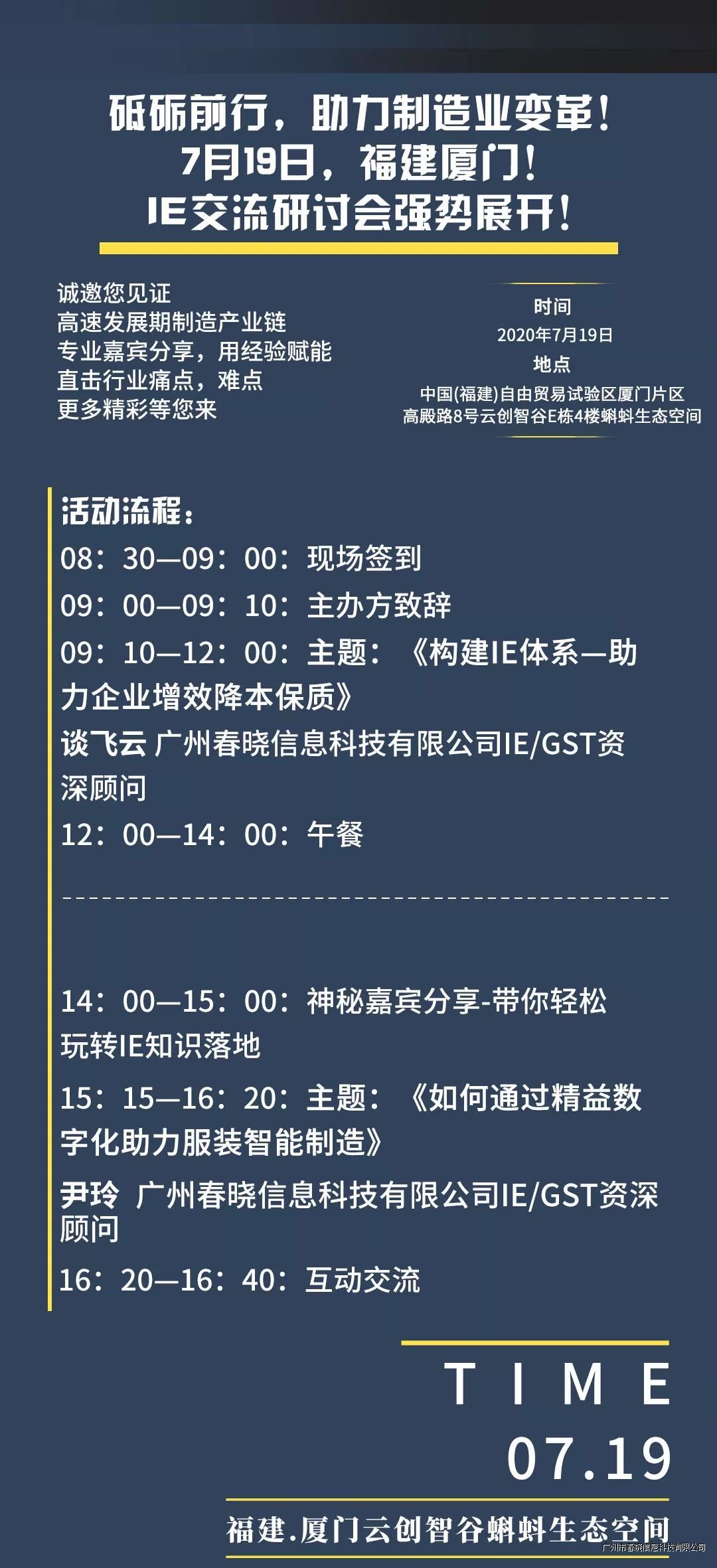 【春晓学院】IE交流研讨会将在7月19日(9:00)于厦门湖里区云创智谷E栋4楼蝌蚪生态空间准时开始!